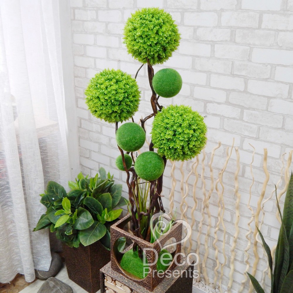 Искусственный бонсай из зелёных шариков - это авторское изделие ручной работы. Такая эксклюзивная композиция станет притягательным элементом стильного интерьера дома, офиса, ресторана или салона и точно не останется незамеченной.