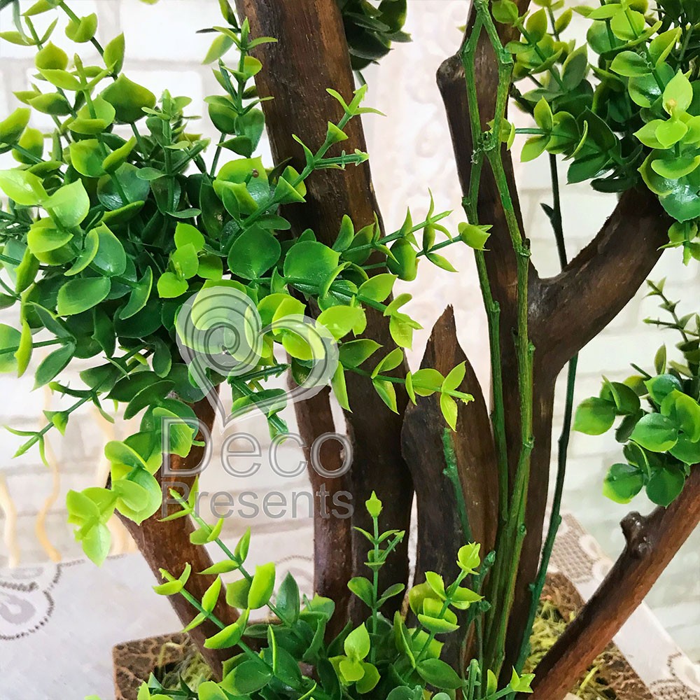 Искусственный декоративный бонсай изготовлен из натуральных деревянных веток, и искусственных веточек Самшита. Использовано 5 искусственных самшитовых веток хорошего качества.