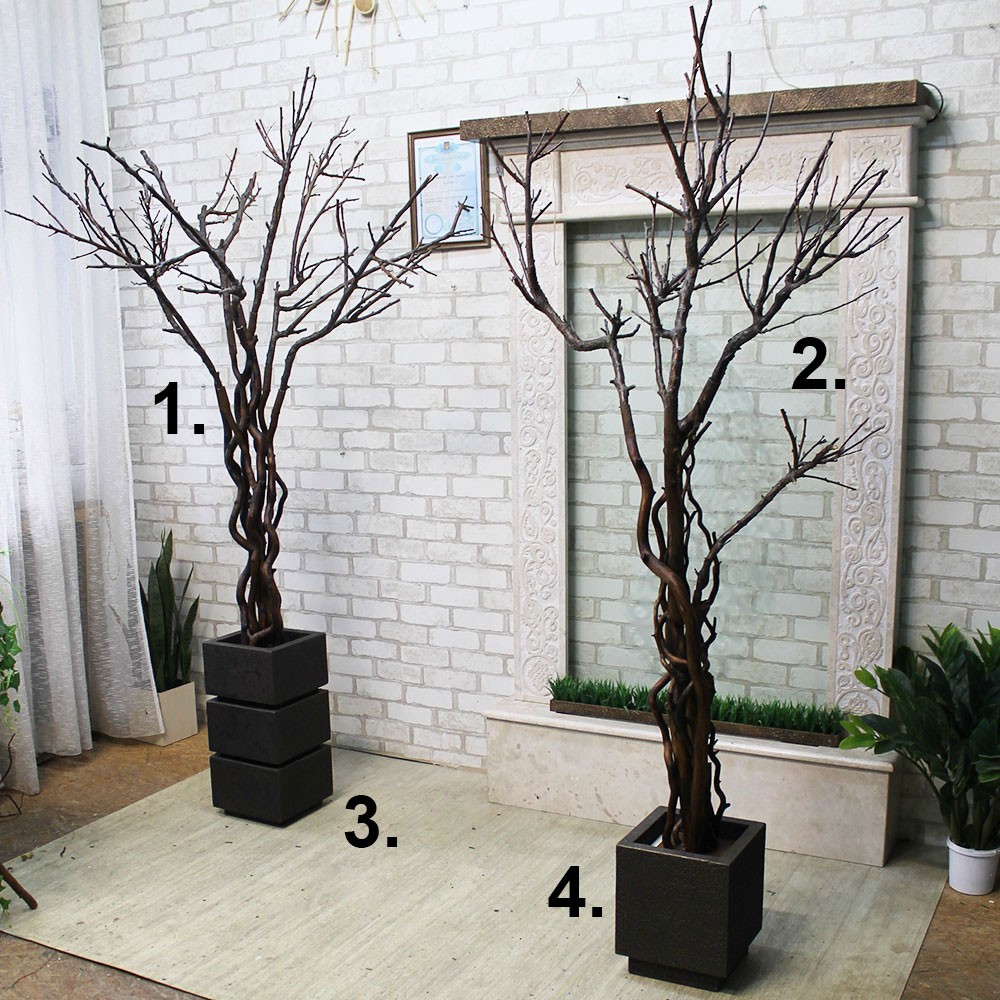 Декоративные деревья из натуральных природных веток можно применить для декора интерьера кафе, ресторана или фотозоны. Они могут быть использованы как в качестве уже готового арт объекта, так и дополненными искусственными листьями или цветами. Которые также можно приобрести у нас на сайте.