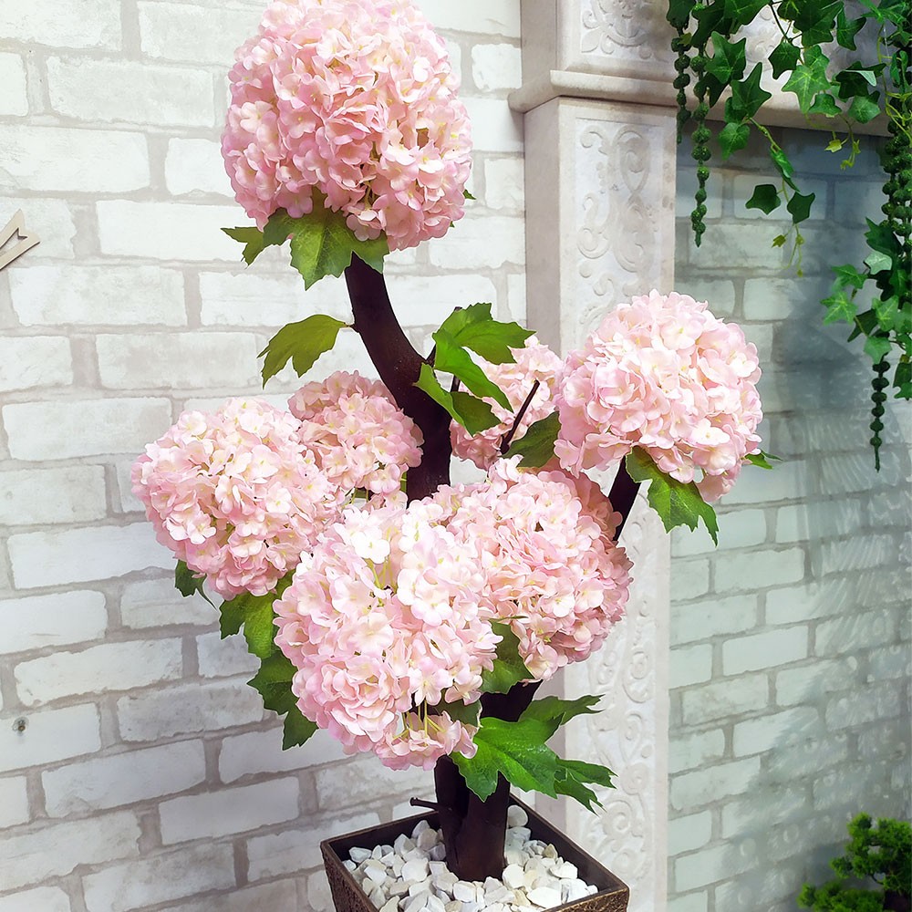 Искусственное дерево изготовлено с применением природных деревянных веток и искусственных цветов гортензии розового цвета. Такое необычайно красивое изделие станет отличным уникальным подарком для девушки к любому празднику.