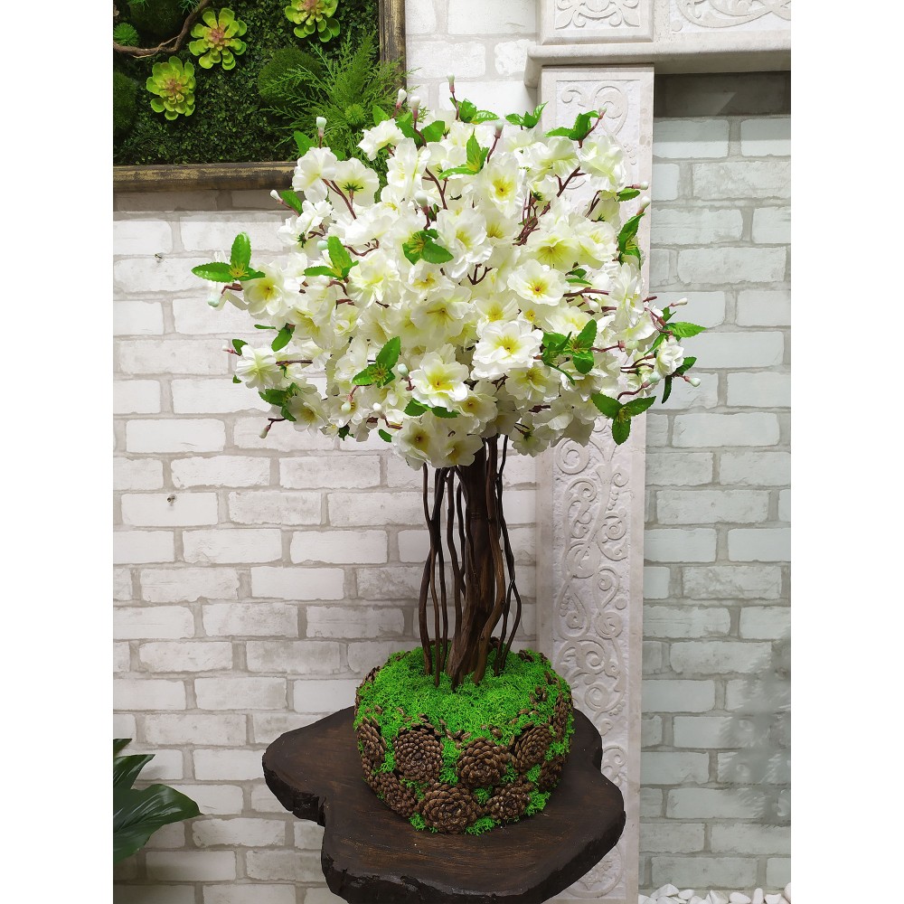Белая сакура 74 дерево в вазоне со стабилизированным мхом