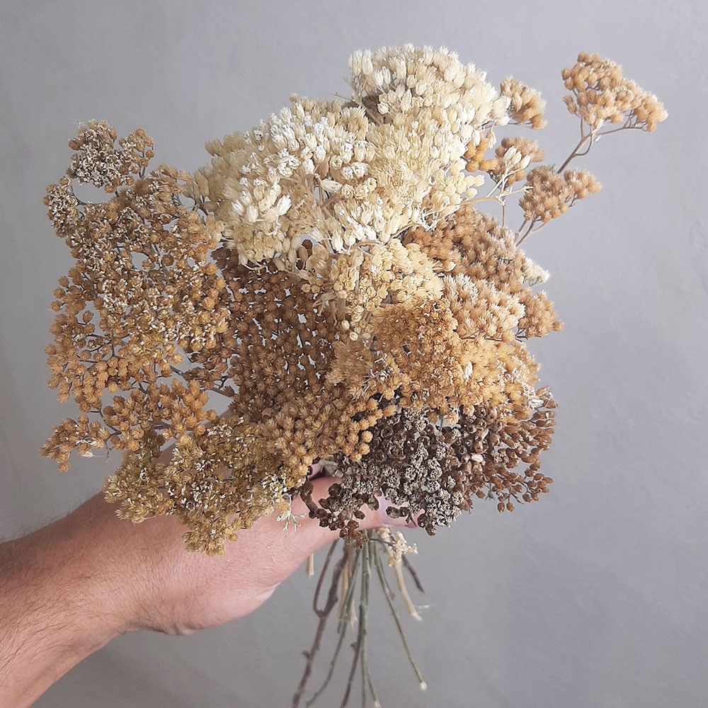 Букет сухих соцветий тысячелистника можно применить для составления букетов в вазах и для другого декора.