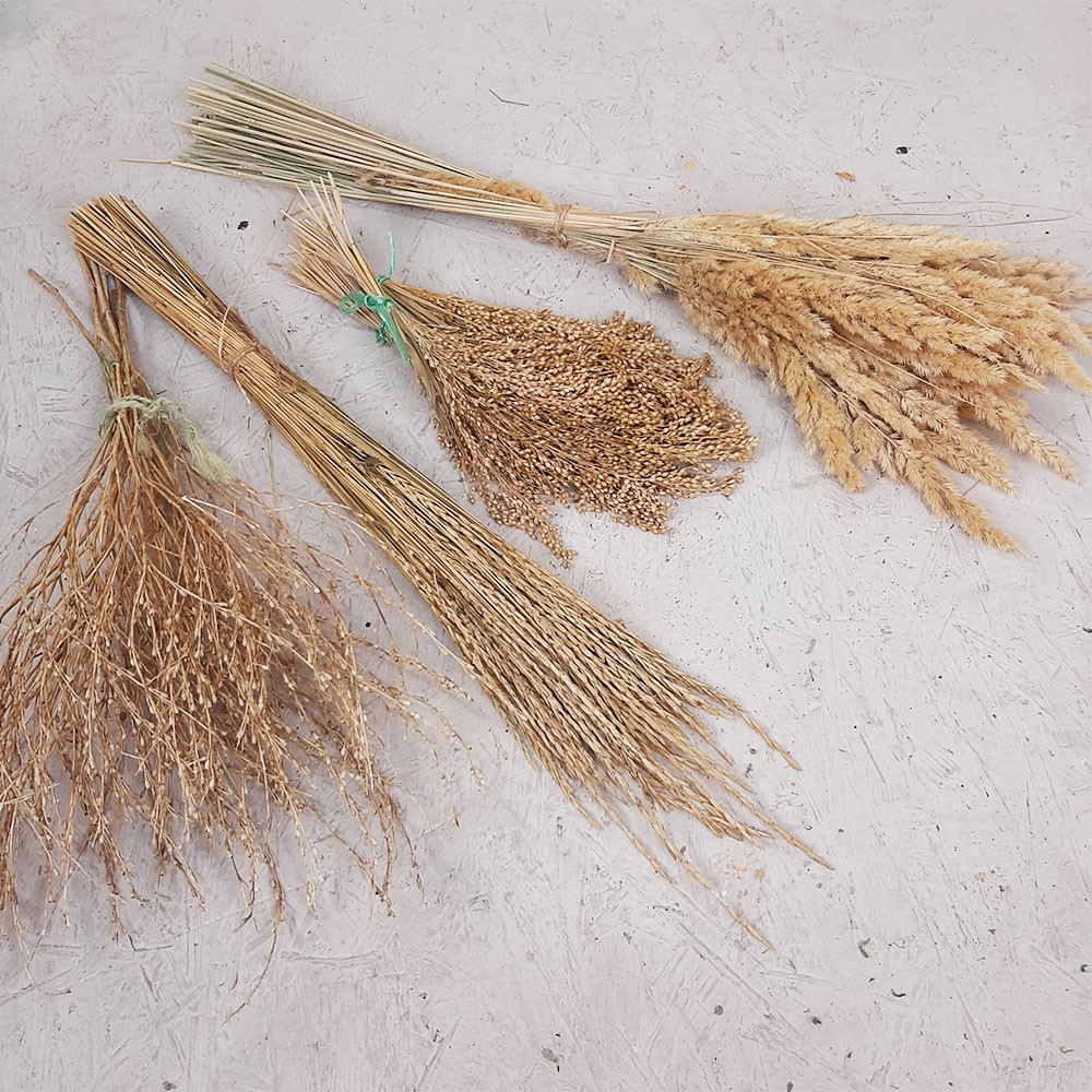 Набор состоит из четырех букетов натуральных сухоцветов и полевых колосков. Засушенные колоски можно использовать для создания букетов из сухоцветов, для композиций в вазах или для декора интерьера.