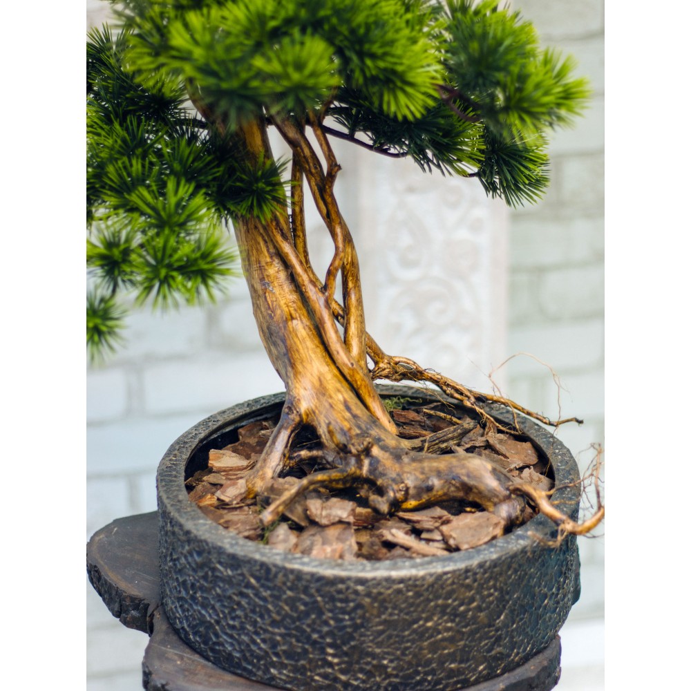 Штучне дерево Бонсай виготовлено з натуральної дерев'яної корчі та штучних соснових гілок гарної якості.