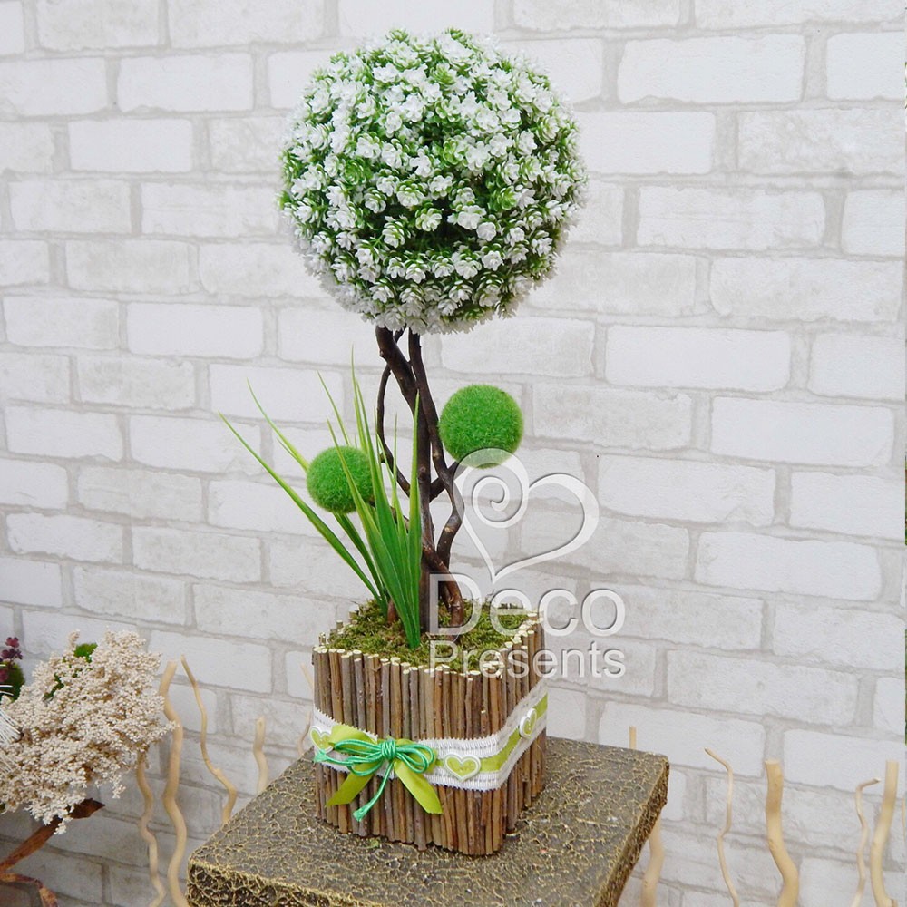 Декоративний бонсай №52 (біла куля) дерево зі штучних квітів