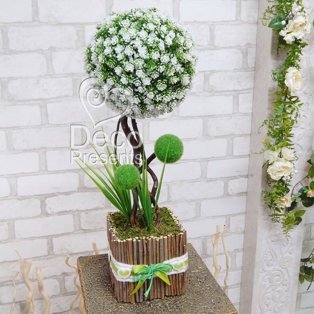 Яскравий весняний бонсай зі штучних квітів стане чудовою прикрасою для інтер'єру Вашої квартири, кафе, салону та інших приміщень. Штучне дерево з біло-зеленими кулями – унікальний виріб ручної роботи, виготовлений нашими майстрами.