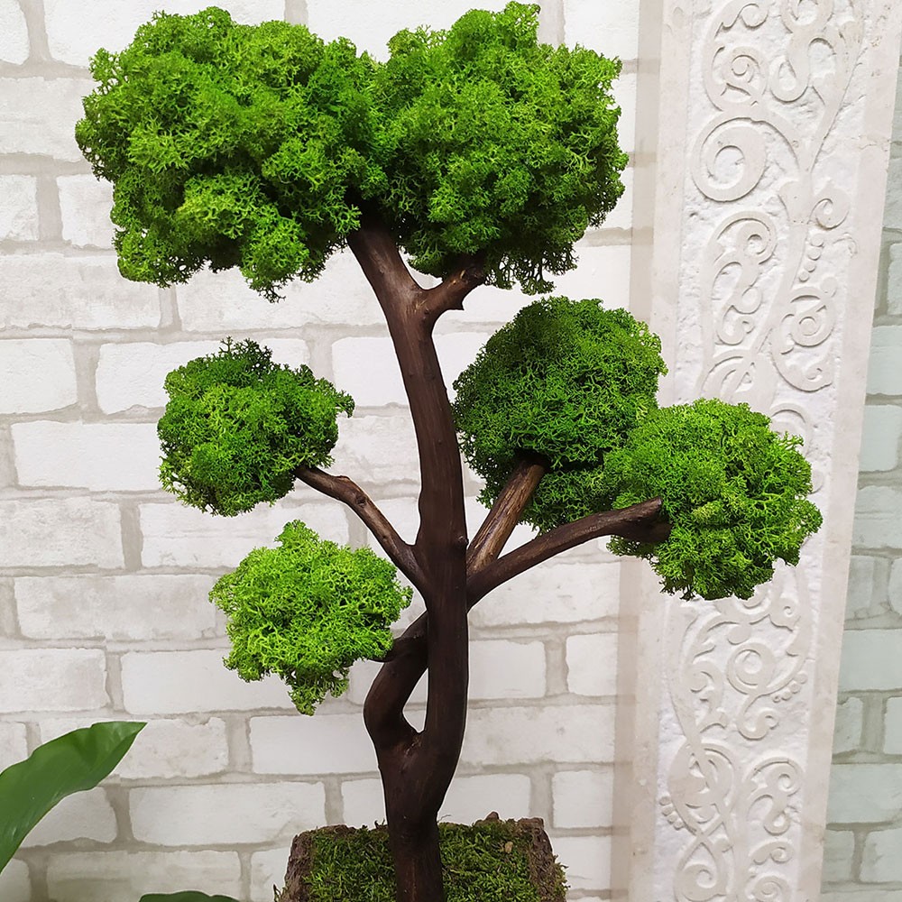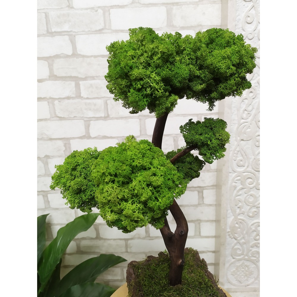 Дерево життя, бонсай зі стабілізованого моху, рослина, що не вимагає догляду. Чудовий декор для інтер'єру будинку, офісу, ресторану. Це невелике стабілізоване дерево в гарно оформленому горщику - унікальний виріб ручної роботи, що не потребує догляду. Натуральний збережений оленячий мох і використані натуральні гілки роблять це дерево по-справжньому справжнім.