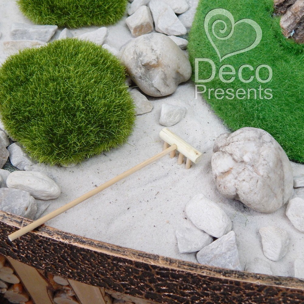 Всі деталі знімні - можуть бути розкладені у вазоні на розсуд власника. Набір з елементами композиції (пісок, каміння, декоративні граблі та мох) буде упакований окремо в пакетику.
