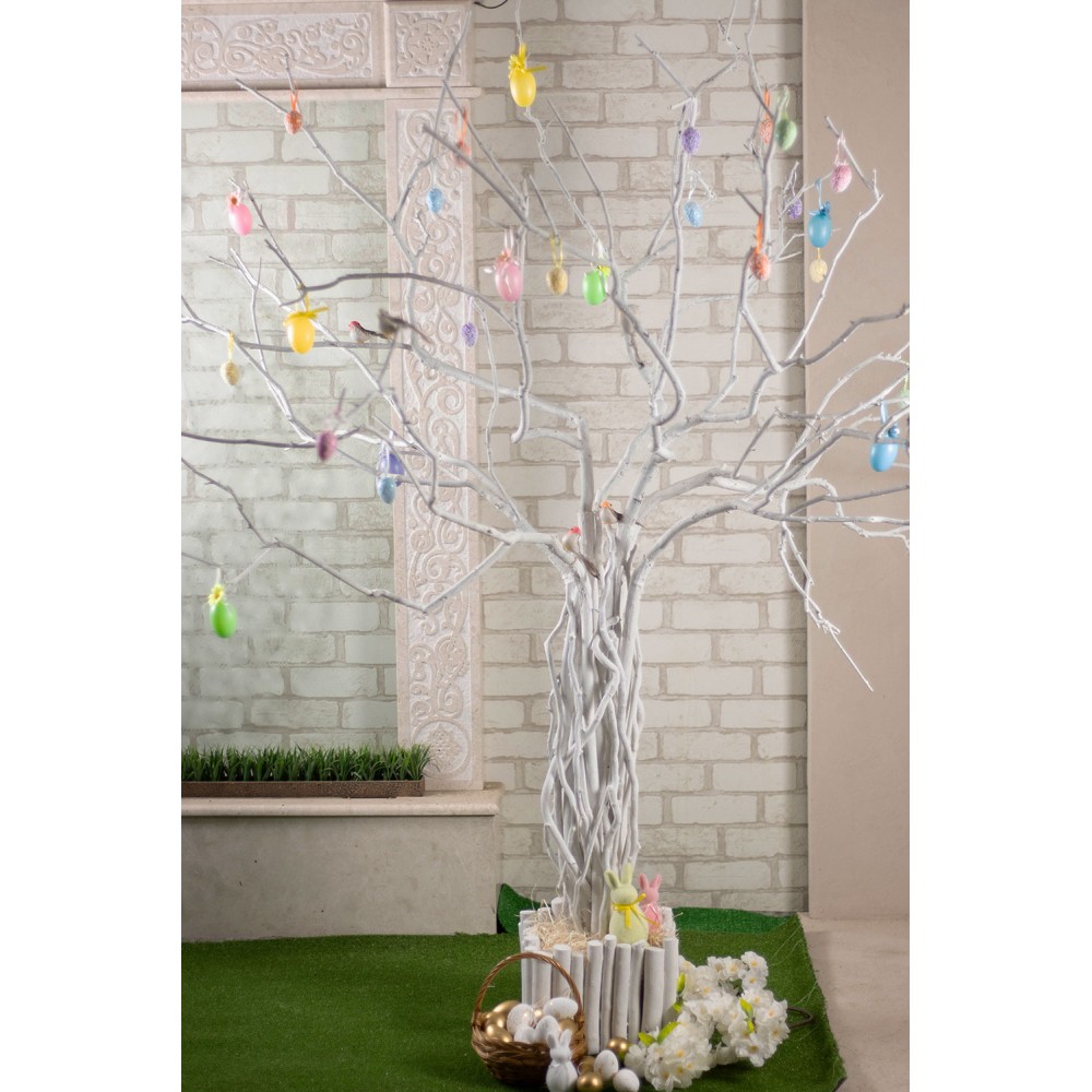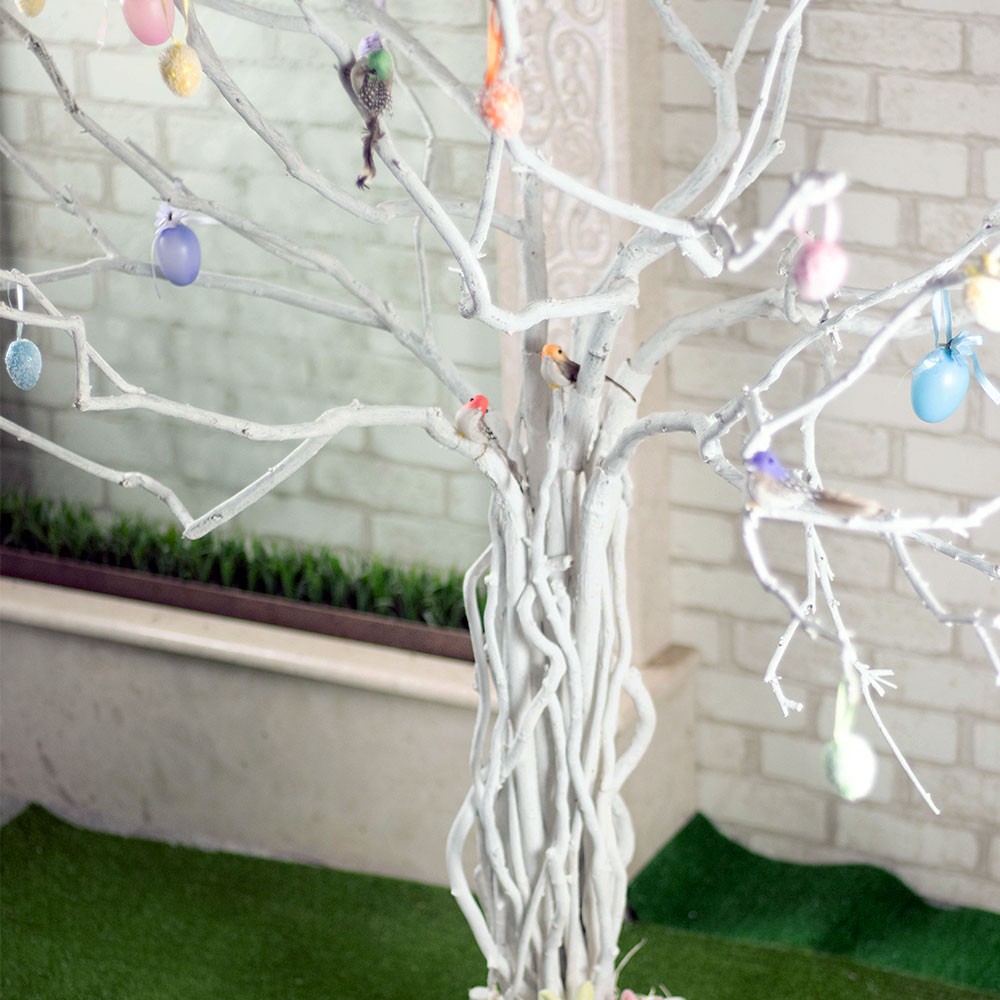 Декоративне біле дерево із природних гілок можна застосувати для великодніх прикрас. Висота близько 2 метрів.