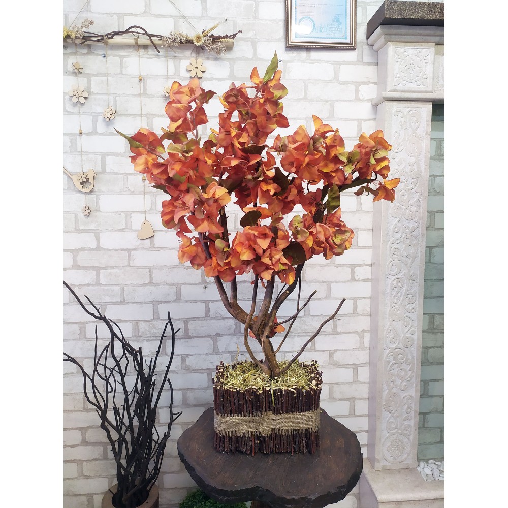 Високий декоративний вазон не входить у вартість. Красиве дерево можна застосувати як осінній декор для вітрини, фотозони, виставкового стенду.