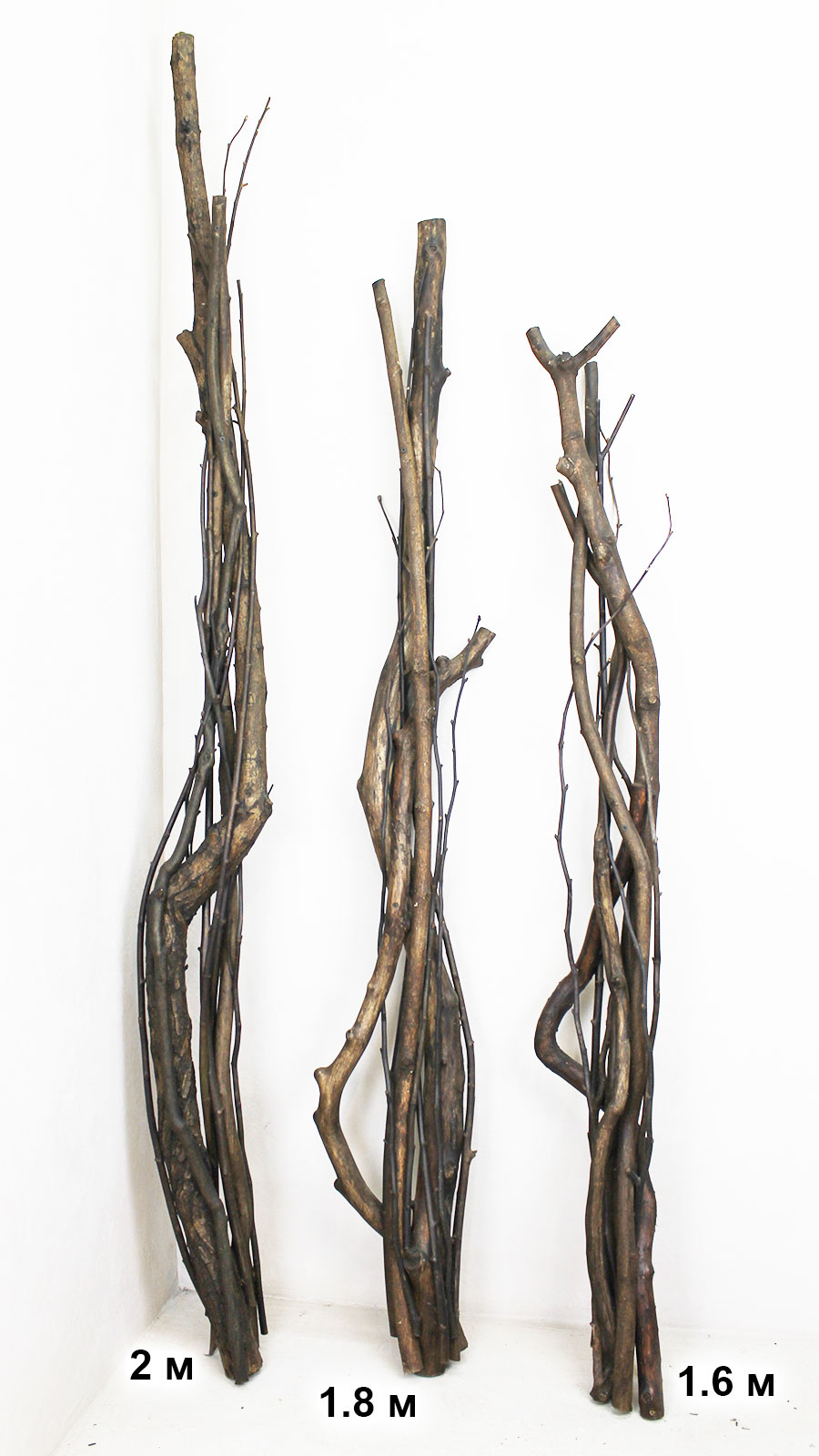 Дерев'яні стволи виготовлені з природних гілок, переплетених між собою. Такі стовбури можна застосувати для створення декоративних дерев з використанням штучного листя або квітів.
